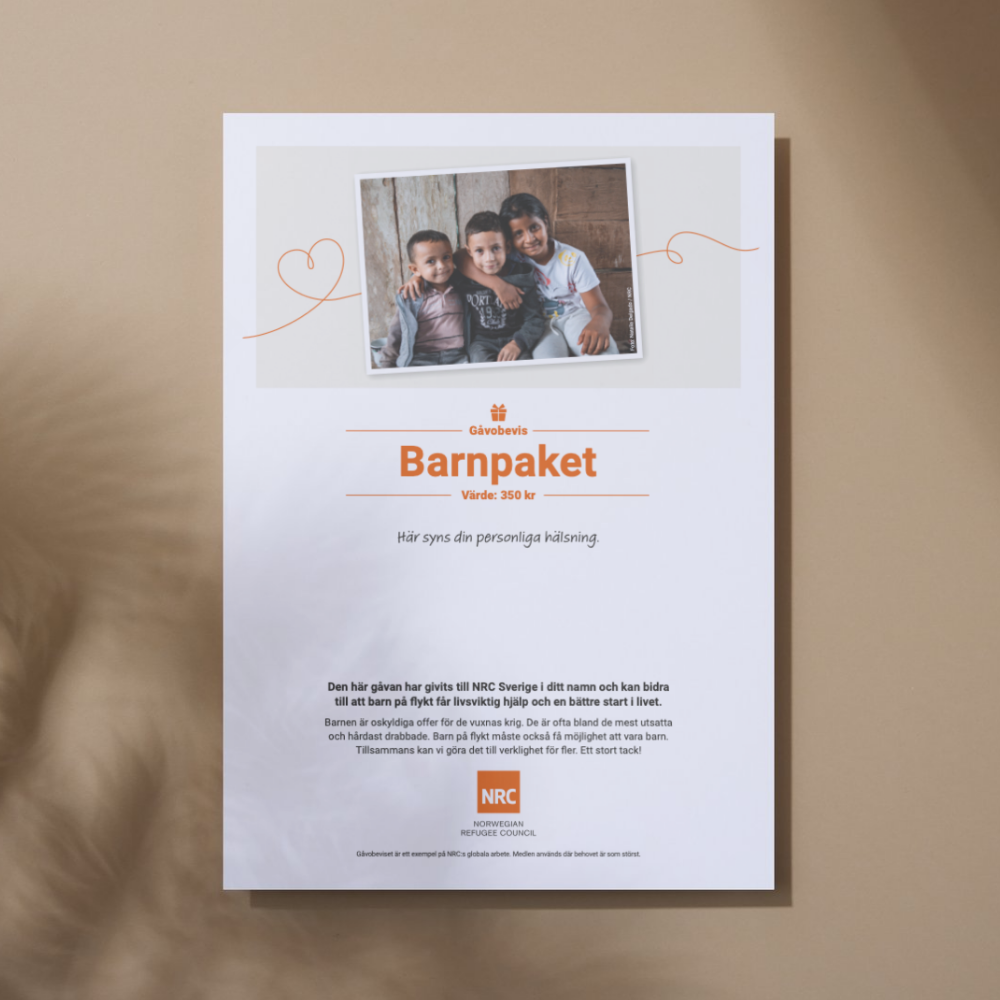 Gåvobeviset är ett exempel på NRC:s globala arbete. Medlen används där behovet är som störst.