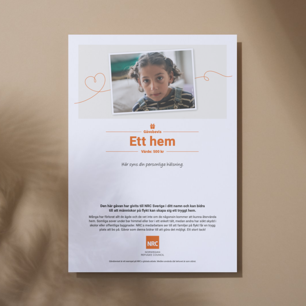 Gåvobeviset är ett exempel på NRC:s globala arbete. Medlen används där behovet är som störst.